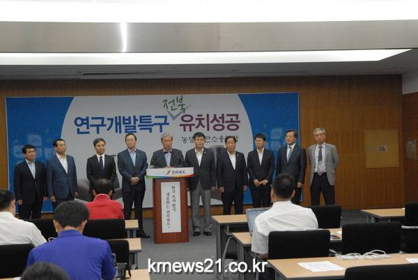 새정연 유성엽 도당위원장님, 지역구 국회의원님들 그리고 김광수 도의회 의장님과 도의회 의원님들을 비롯해 전주, 정읍, 완주 3개 시장·군수님, 전북대, 전주대, 우석대 총장님과 도내 국·공립연구소장님 그리고 도민 여러분께서 함께 해 주신 결과입니다. 전북 발전을 위해 마음을 하나로 모아주신 모든 분들께 깊이 감사드립니다.