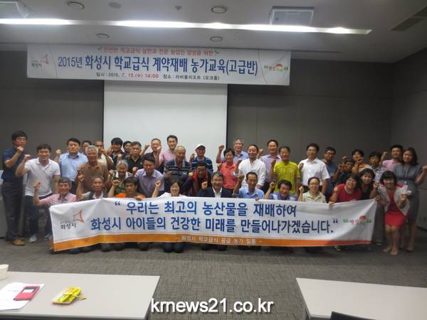안전하고 영양가 높은 학교급식 만들기에 나선 화성시가 지난 15일 학교급식을 납품하는 관내 32개 농가를 대상으로 라비돌 리조트에서 농가교육(고급반)을 시작했다.