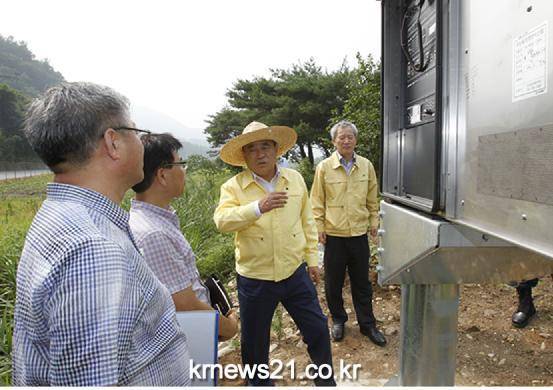 정현복 광양시장이 지난 7월 14일 제9호 태풍 “찬홈”에 이어 제11호 태풍 “낭카” 북상에 대비하여 광양읍 마산 재해위험지구와 옥룡 계곡내 재난 예․경보시설 정상 작동여부에 대한 현장 확인․점검에 나섰다.