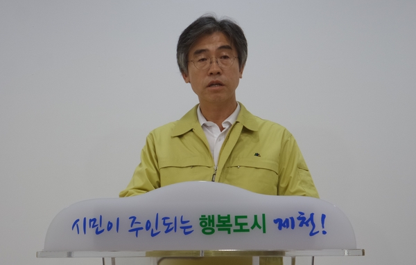 ▲ 22일 제천시청 브리핑룸에서 최종택 제천시농업기술센터 소장이 기자회견을 갖고 지난 6월12일 발생한 화상병 수급대책을 발표하고 있다.