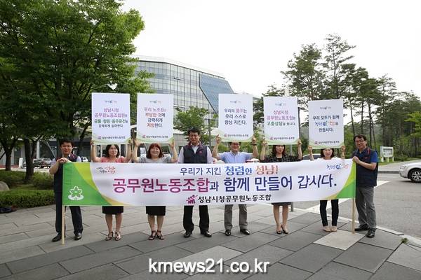 성남시청공무원노동조합(이하 성공노. 위원장 박동화)은 오는 7월 31일까지 나흘간 성남시청과 수정·중원·분당구청을 차례로 돌며 조합원들의 출근 길목에서 ‘청렴 캠페인’을 전개한다.