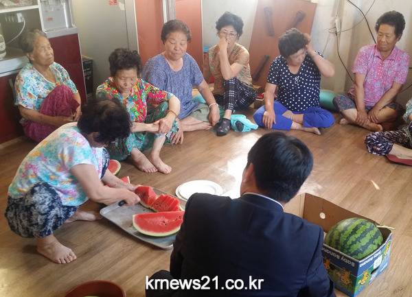 4~5일 광산구(구청장 민형배) 공직자들이 ‘무더위 쉼터’로 지정된 경로당을 잇달아 방문해 어르신들의 건강을 챙기고, 불편사항을 들었다.