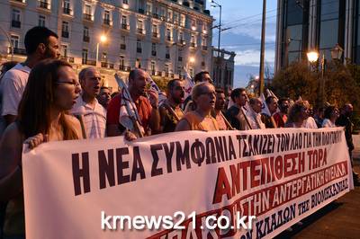 그리스 아테네에서 제3차 구제금융 협상에 대한 반대 시위가 벌어졌다.