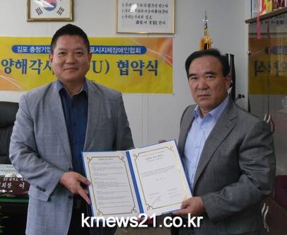 김포시지체장애인협회와 김포시충청기업인협의회(이하, 김포충기협)가 저소득지체장애인들의 삶의 질 개선을 위한 상호 협력 양해각서(MOU)를 체결했다.