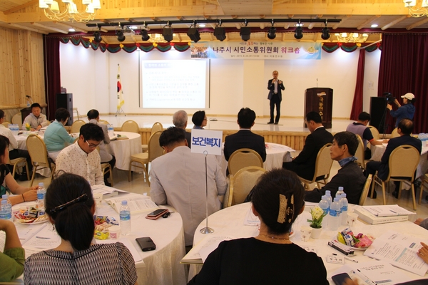 시는 26일 오전 10시부터 나주시 극동연수원에서 시민소통위원 70명이 참석한 가운데 워크숍을 갖고, 소통위원 역량강화를 위한 교육에 이어 각 분과위별로 토의 및 발표를 갖고 향후 활동방안을 논의했다.