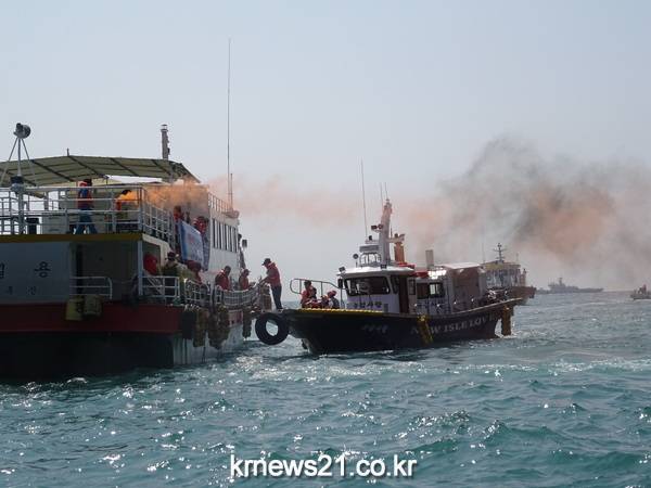 전라남도는 3일 신안군과 합동으로 신안 홍도항 인근 해상 2km 지점에서 유람선 좌초사고를 가상한 실제 대응훈련을 실시했다.