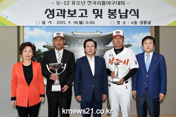 광주시는 U-12 유소년 전국 리틀 야구대회 성과보고 및 봉납식을 14일 시청 상황실에서 조억동 광주시장, 소미순 광주시의회 의장, 이원용 생활체육회장, 김영호 광주시 야구연합회장, 임노병 광주시 리틀 야구단 감독, 안수환 코치, 학부모 등 60여명이 참석한 가운데 개최했다.