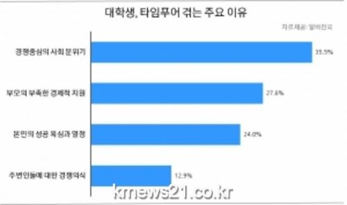 상당수의 대학생들이 경쟁을 강요하는 사회현실과 취업준비로 일상 속 시간빈곤을 겪고 있는 것으로 나타났다.