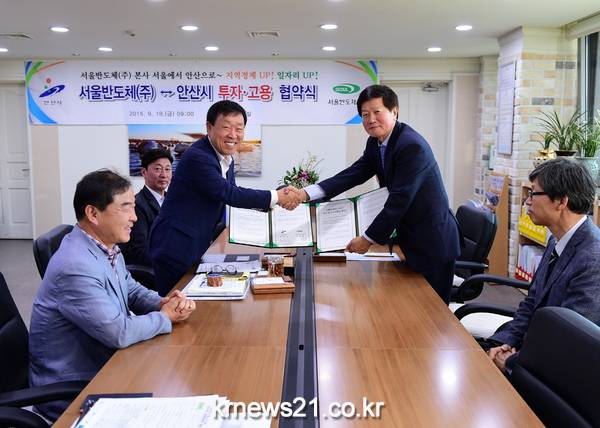 안산시(시장 제종길)와 서울반도체(주)(대표이사 이정훈)는 9월 18일 지역경제 활성화와 도시경쟁력 강화를 위해 기업하기 좋은 환경 조성, 지역 내 일자리 창출, 시설 투자 등을 내용으로 하는 투자·고용 협약을 체결했다.