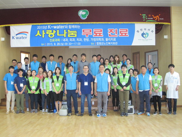 □ K-water 함평수도관리단(단장 김진영)은 함평군의 적극적인 협조로 9월 20일,함평군 노인복지관에서 “2015년 사랑나눔 의료봉사활동”를 실시했다.