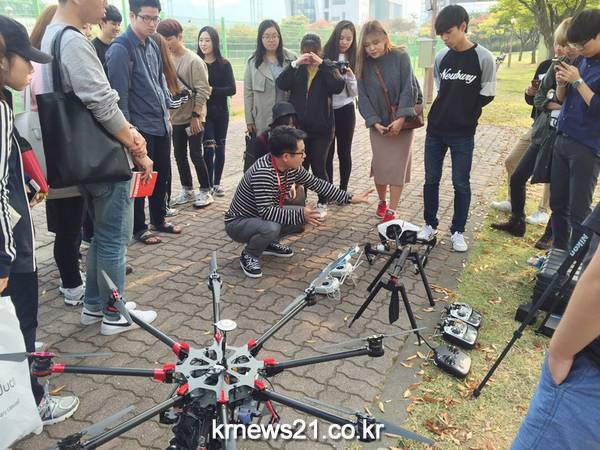 건국대 글로컬캠퍼스 다이나믹미디어학과는 지난 15일 오후 학생들의 취업역량 강화의 하나로 실시하는 ‘산학특강’에서 최근 미디어 분야의 이슈가 되고 있는 드론의 활용에 관한 ‘드론 특강 및 실습’을 실시했다.