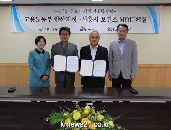 시흥시보건소는 매년 증가하고 있는 외국인근로자의 재해발생 문제 해결을 위하여 고용노동부 안산지청과 외국인근로자 재해 감소를 위한 상호 협약을 지난 21일 체결하였다고 밝혔다.