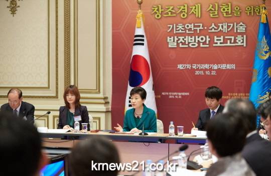 ▲ ⓒ청와대박근혜 대통령은 22일 오전 청와대 영빈관에서 「창조경제 실현을 위한 기초연구·소재기술 발전방안 보고회」 겸 제27차 국가과학기술자문회의(이하 ‘자문회의’)를 주재했다.