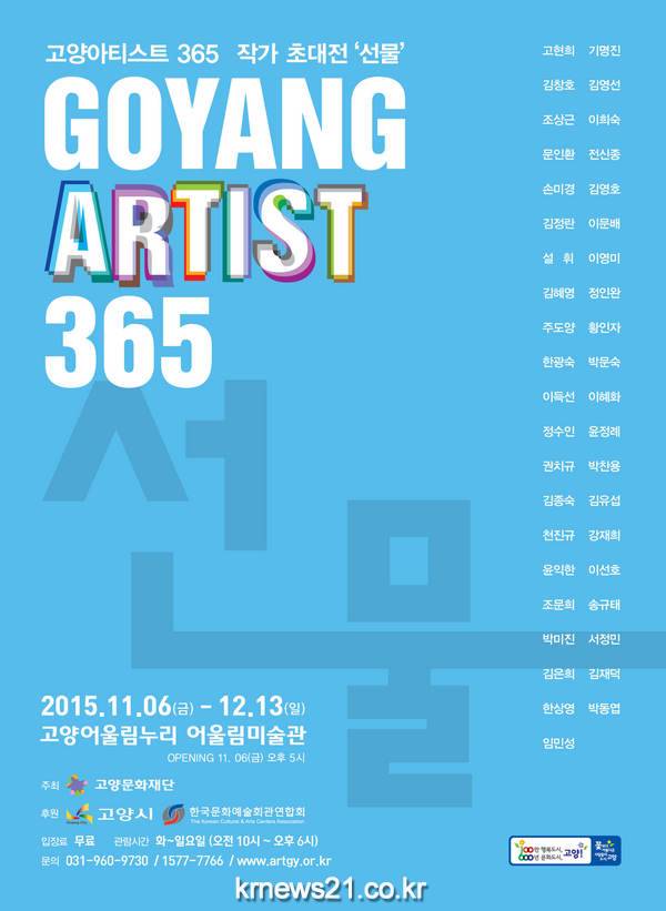 고양문화재단(이사장 최성 고양시장, 대표이사 안태경)은 오는 11월 6일부터 12월 13일까지 고양어울림누리 어울림미술관에서 고양지역의 미술문화에 활력과 열정을 더하기 위한 <고양아티스트 365 작가 초대전 ‘선물’>을 진행한다.