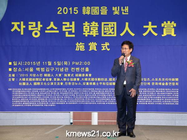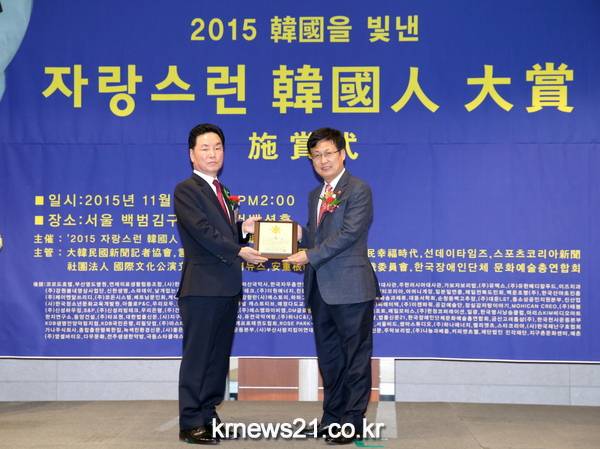 최성 고양시장이 5일 서울 백범 김구 기념관에서 ‘2015 한국을 빛낸 자랑스런 한국인 대상(지방행정 발전공로 분야)’을 수상했다.