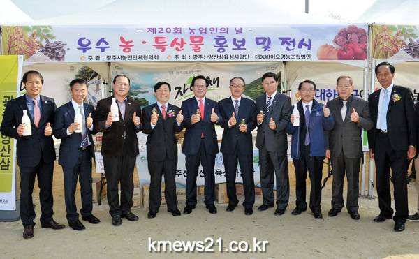 광주시는 11일 곤지암읍 공설운동장에서 조억동 광주시장, 노철래 국회의원, 소미순 시의회의장, 도·시의회 의원, 기관단체장 및 농업인 등 2천여 명이 참석한 가운데 ‘제20회 농업인의 날 기념행사‘를 개최했다.