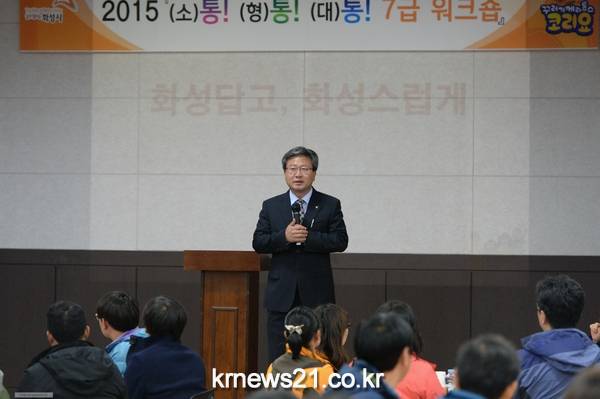 채인석 화성시장은 특강을 통해 시의 주요역점사업과 크고 작은 정책 사업을 성실히 추진해 향후 100만 대도시, 7대 부자도시로 성장하는데 공직자들의 역할을 강조했다.
