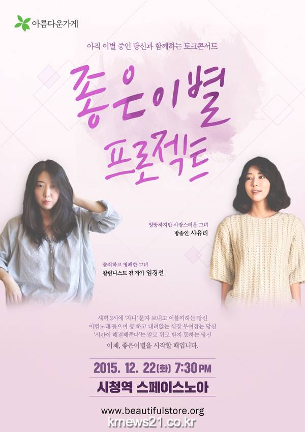 아름다운가게는 연말을 맞아 다음달 22일 오후 7시 30분 스페이스노아에서 토크콘서트 ‘좋은이별 프로젝트’를 진행한다.
