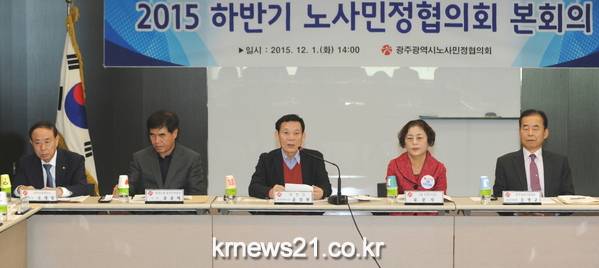 광주광역시노사민정협의회(위원장 윤장현 시장, 이하 ‘협의회’)가 1일 광주경영자총협회 회의실에서 ‘2015년 하반기 노사민정협의회 본회의’를 열고 2015년 노사민정협의회 운영 결산 및 2016년 운영방안 등을 논의했다.