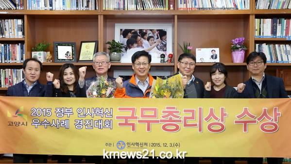 고양시(시장 최성)는 3일 인사혁신처 주관으로 개최된 ‘정부 인사혁신 우수사례 경진대회’에서 ‘경력정보관리를 통한 고양형 희망보직시스템’의 혁신성을 인정받아 국무총리상을 수상했다.