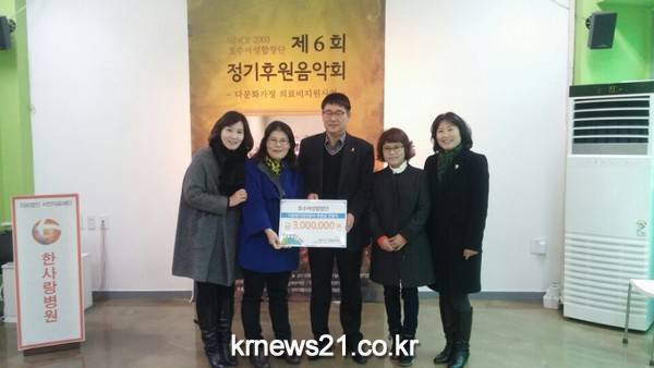 민간공익모금재단인 안산희망재단(이사장 이천환, 한사랑 병원장)은 12월 4일 한사랑 병원에서 안산호수여성합창단, 은하수사우나 관계자들과 후원금 전달식을 진행하였다.