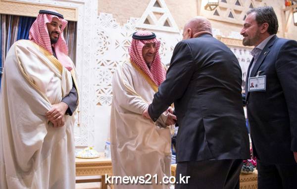 ▲ ⓒ FAYEZ NURELDINE / AFP SPA / AFP12월 10일 시리아 야당인들과 만나고 있는 모하메드 빈 살만 사우디 국방 장관(좌)