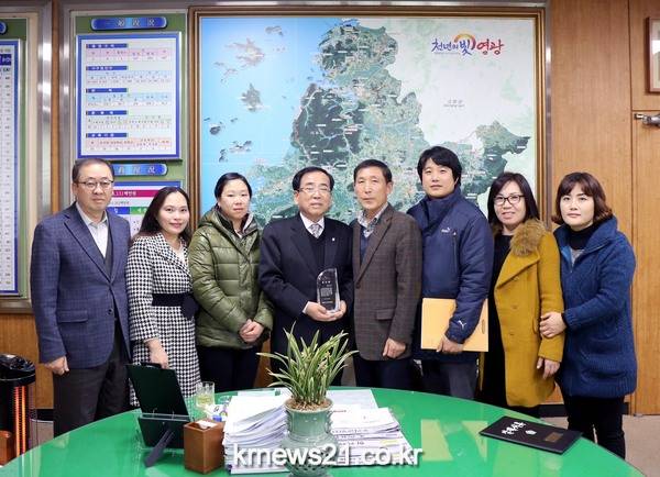 영광군(군수 김준성)은 지난 14일 관내 사회적기업인 산머루마을영농조합법인 대표로부터 감사패를 수여 받았다.