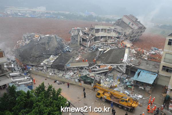 ▲ ⓒSTR / AFP중국 남부 선전 산업 단지를 휩쓴 산사태로 30개 이상의 건물이 진흙더미에 묻히고 91명의 실종자와 가스 폭발을 일으켰다고 중국 언론이 보도했다.