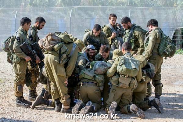로켓 파편 수색에 나선 이스라엘 군인