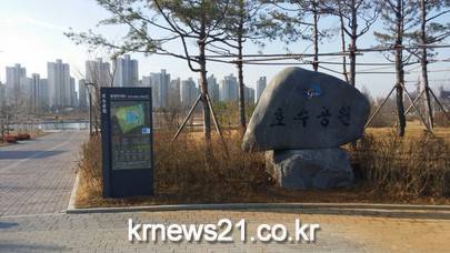 김포시는 한강신도시에 조성된 호수공원의 공원 홍보효과를 극대화하기 위해 공원 입구에 표지석 설치를 완료했다고 24일 밝혔다.