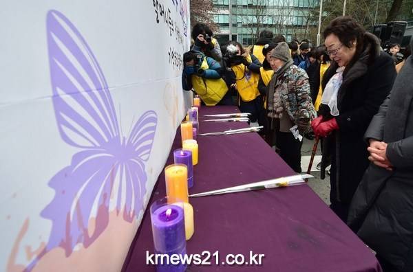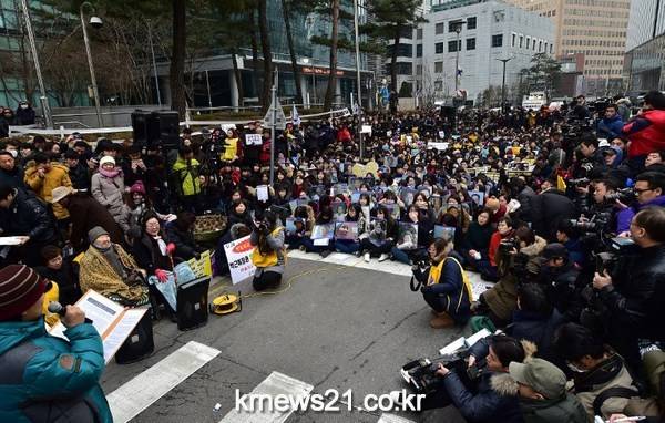 집회에 참석한 서울 이화여고 1학년 이정은(16)양은 "위안부 피해 할머니들이 겪은 일을 잊지 않겠다며 세운 위안부 소녀상을 일본 대사관 앞에서 다른 곳으로 옮긴다는 것은 아픈 역사를 지우겠다는 것"이라고 했다.