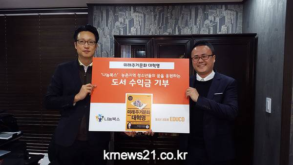 출판사 나눔북스가 지난 12월 청소년 봉사단체 에듀코에 출간 도서 ‘미래주거문화 대혁명’의 판매 수익금 100만 원을 기부했다.