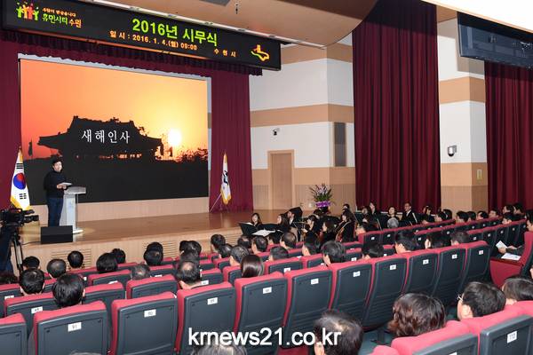 시무식에 이어 염 시장은 시청 중앙로비에서 시립교향악단의 신년음악회를 관람한 뒤 별관 구내식당에서 떡국을 배식하며 직원들과 오찬을 함께 했다.