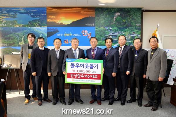 1월 4일 안성축산업협동조합(조합장 우석제)에서 어려운 이웃에 전해달라며 사골세트 280상자(14,000천원 상당)를 기탁했고, 친환경 축산전문기업 ㈜팜스코(대표이사 정학상)에서는 성금 300만원을 기탁했다.