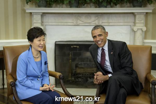 ▲ ⓒBRENDAN SMIALOWSKI / AFP2015년 10월 16일 백악관에서 만난 박근혜 대통령과 오바마 대통령