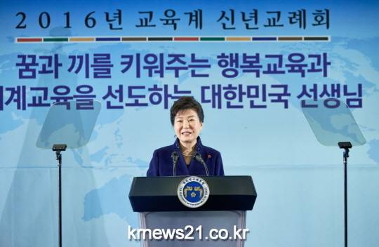박근혜 대통령은 오늘 오전 세종문화회관에서 열린 2016년 교육계 신년교례회에 참석해 교육계 지도자들의 지난 한해 노고를 격려하고 올해 교육정책의 성공적 추진을 위해 협조를 당부했다.