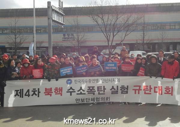 안산시 안보단체연합회 회원 200여명은 지난 1월 18일 오후 2시 중앙역 앞 광장에서 ‘북핵 수소폭탄 실험 규탄대회’를 열었다.