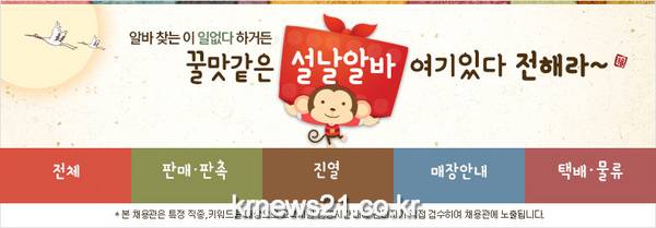 이에 알바천국에서는 ‘2016 설날 단기알바 채용관’을 오픈, 보다 쉽고 간편하게 설 연휴 꿀 알바를 찾을 수 있는 기회를 마련했다.