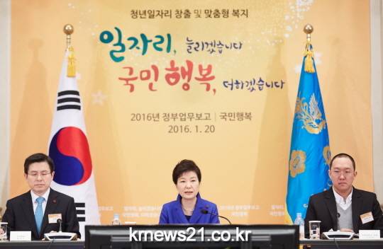 박근혜 대통령은 오늘 오전 청와대에서 열린 세 번째 업무보고에 참석하여 교육부, 고용노동부, 보건복지부, 여성가족부 등 4개 부처로부터 청년일자리 창출 및 맞춤형 복지 계획을 보고받았습니다.