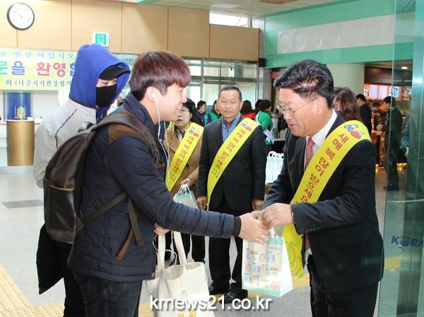 강인규시장과 홍철식 시의회의장은 “설명절을 맞아 고향을 찾는 귀성객이나, 자녀를 만나기 위해 역귀성하는 시민들을 위한 따뜻한 행사를 통해 고향의 푸근한 정을 느끼실 수 있을 것”이라며 “오가는 길 안전하게 풍성한 설 명절을 보내시길”당부했다.