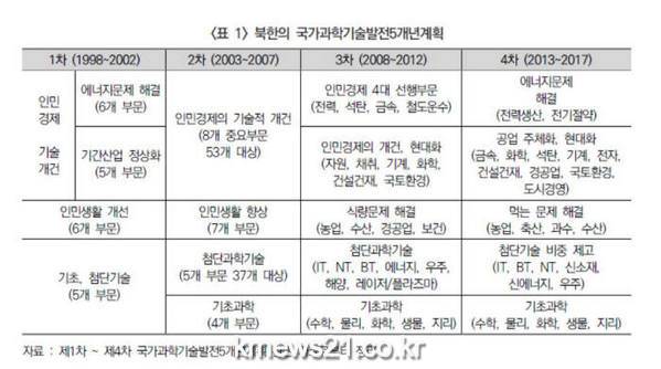 과학기술정책연구원(STEPI)은 ‘북한 김정은 시대의 과학기술 정책 변화와 시사점’ 보고서에서 김정은이 집권 초부터 지식경제를 천명하며 과학기술체제 개편과 첨단산업 육성, 지식보급 확대, 과학기술자 사기진작 등을 적극 추진하고 있다고 발표했다. 북한은 제4차 과학기술발전5개년계획(2013~2017년)에서 먹는 문제와 에너지 문제 해결, 첨단기술 육성을 강조하고 있다.