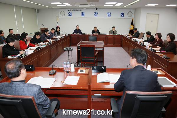 경기 시흥시의회(의장 윤태학)는 16일 의회운영위원회 회의장에서 의원간담회를 개최했다.