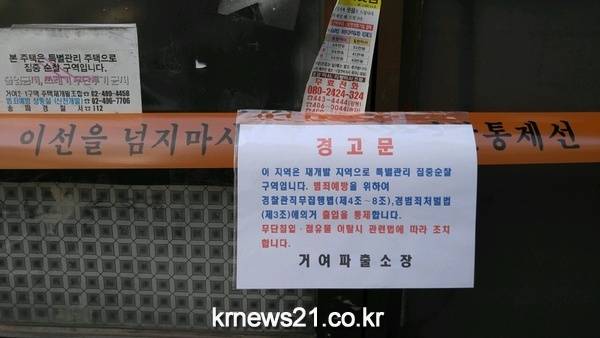 또한, 주민 불안과 범죄예방을 위해 출입 통제선을 설치하고 경고문을 제작 부착하여 범죄에 대한 예방을 실시 안심구역을 확보 주민들로부터 큰 호응을 받았다.