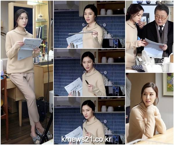 서지혜는 주방 세트에서 한 손에는 대본, 다른 한 손에는 칼을 들고 며느리 지선의 모습과 180도 다른 ‘반전 표정’을 지어보였다. 허공을 응시하며 개구진 웃음을 날리는가 하면, 카메라를 향해 서슬 퍼런 눈빛을 쏘는 등 전설의 칼잡이를 방불케 할 표정 연기 릴레이를 펼친 것. 하지만 촬영이 진행되자 언제 그랬냐는 듯 청초하고 밝은 표정을 지으며 연기에 돌입, ‘변화무쌍’ 팔색조 매력을 뽐냈다.