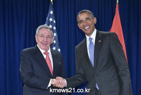 ▲ ⓒMANDEL NGAN / AFP지난해 9월 뉴욕 유엔(UN) 본부에서 만난 라울 카스트로 쿠바 국가평의회 의장(왼)과 버락 오바마 미국 대통령(오)