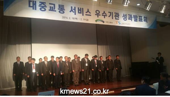 이날 국토교통부는 ‘2015년도 대중교통 시책평가’ 워크숍을 충남 예산 리솜스파캐슬에서 열어 지난 1월 대중교통 시책평가에서 우수한 성적을 거둔 지자체에 상을 수여했다.