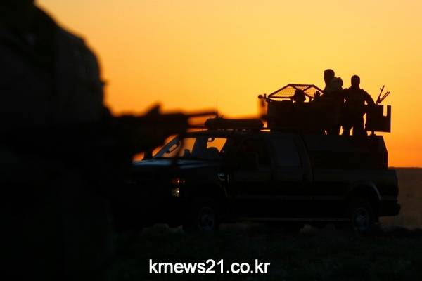 이라크 경찰들이 사우디 국경 근처 지역인 사마와(Samawah) 지방을 순찰하고 있다.