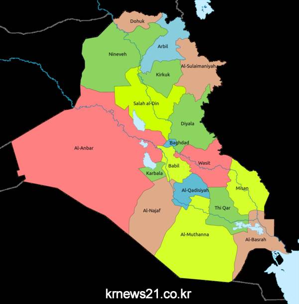 ▲ 이라크 지역별 지도지난2월 29일 방한한 이라크 특사 사절단 환영만찬이 오늘 2일 오후 7시에 롯데호텔 크리스탈 볼룸에서 개최된다.