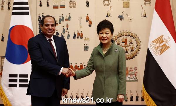 오늘 오전 청와대에서 박근혜 대통령과 알시시 이집트 대통령은 정상회담을 갖고 양국 간 경제·통상, 인프라 건설 협력, 개발협력, 문화·교육협력 증진 방안, 국제무대에서의 협력 및 지역 정세 등에 대해 폭넓은 논의를 했다.