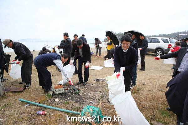 또한, 이날 회의 후 군수를 비롯한 읍·면장과 지역유관기관 및 사회단체 회원 등 60여명이 참석한 가운데 암태면 추포해수욕장 주변에서 쓰레기 수거 등 환경정화활동을 실시하였으며